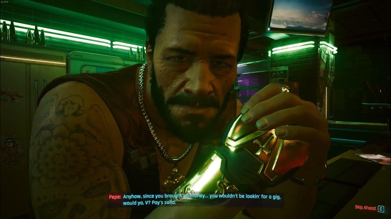. Pepe asks V to help him find out if his wife is cheating on him Your objective is to choose whether to interfere in the bar fight, and whether to help Pepe investigate his wife